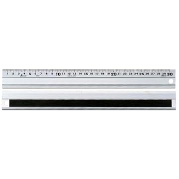 アルミ製ですので軽く、アクリル製定規と違い、滑ったり、またナイフで定規自体を削ってしまうことも最小限に抑えられます。スケール面、カッティング面、溝引きもちゃんと備わっています。