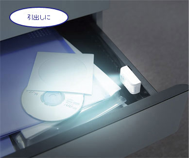 クロゼットや押入れ、書庫などの扉、また引き出しなどに設置して内部を照らせるLEDのミニライトです。