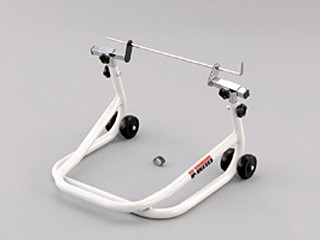 250ccから1400ccのバイク(オートバイ)で、リヤホイールのアクスルシャフト内径が8mm以上の貫通タイプになっている車種全てで使えるメンテナンス・スタンドです。
