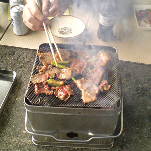 アウトドア、また休日に自宅でバーベキューなどをするのに必要な道具をコンパクトにセットに収めた簡易型コンロです。