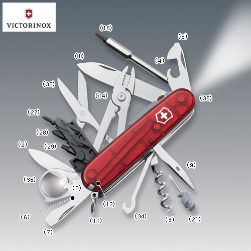 ビクトリノックスの蓄光ボディとLEDライトを備えた36機能ツールです。