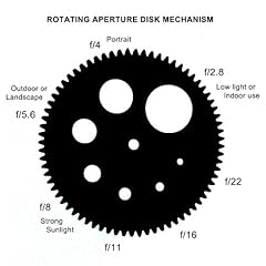 ロータリーディスク方式というのは、大きさの違う穴の開けられた円盤が回転してレンズの絞りを変えていく、非常に原始的(?)な方法。果たして現代において一般的にレンズの絞りというと、レンズの筐体内に重ねて設えられた羽根が絞りに合わせて穴を狭めていく方法を採るものですから、そんな方法では穴から穴へ移るインターバル時に暗転してしまわないかと疑問を持ってしまう方もおられましょうが、そこは穴と穴の間隔が絶妙に取られてレンズに入る光が途切れないようしてありますので心配はありません。