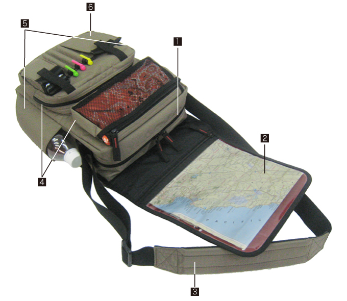 高密度210Dナイロンを素材に表面には撥水加工が施されて多少の雨なら大丈夫な仕立てで、背面に雑誌や新聞が入れられるマガジンポケット、携帯電話やスマートフォン、ペンなどが収納できる多機能ポケット、そして地図やチケットを入れるのに最適なクリアケースを備えますので、通勤通学から、旅行もにも対応するマルチタイプになっています。
