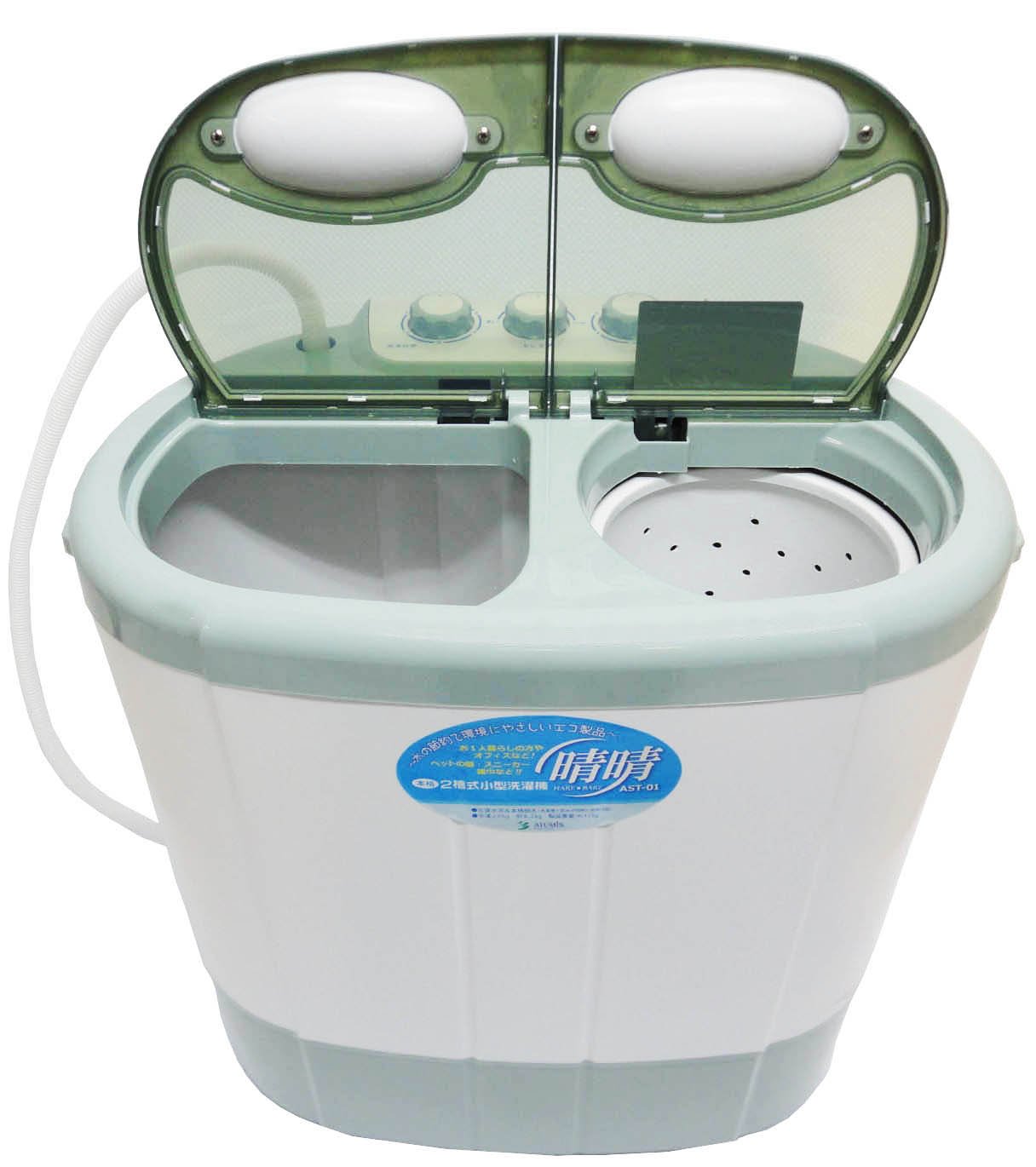 従来の小型洗濯機の殆どは1槽式でしたが、これは2槽式で、洗いながら脱水も同時にできる仕立てで、水も少なくても済みますので、経済的でもあります。もちろん排水もしっかりできて、仕様としては反復水流式で、かつて一般的だった2槽式洗濯機をそのまま小さくしたものになっています。