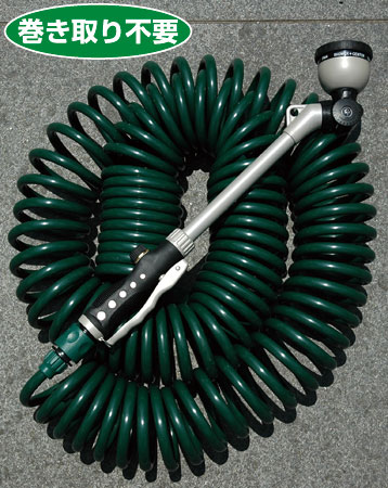 自ら縮まり、巻き取る必要がなく、捩れによりホースの劣化も少ないコイルタイプのホースです。