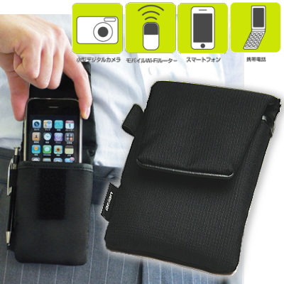 サイズ高さ138×幅90×厚さ18㎜として、iPhoneを始めとするスマートフォンに保護カバーをつけた状態での収納を基本に余裕を持たせて仕立てられているものですので、言うまでもなく同様サイズのものなら多機種スマートフォンだけでなく、携帯電話、デジタルカメラ、モバイルルーターなど、好みや必要に合わせて自由に持ちいれます。
