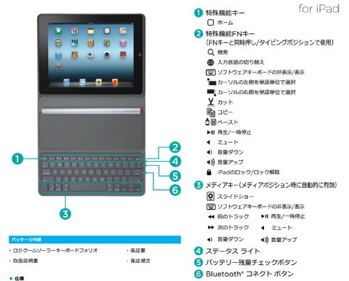 キーボードとしては、Bluetooth接続で邪魔になるケーブルはなく、そして、iPadをタイピングホジションとメディアポジションの2段階の角度で立てられることから、テキスト入力と、プレゼンテーションの際に役立つ仕立てとなっています。