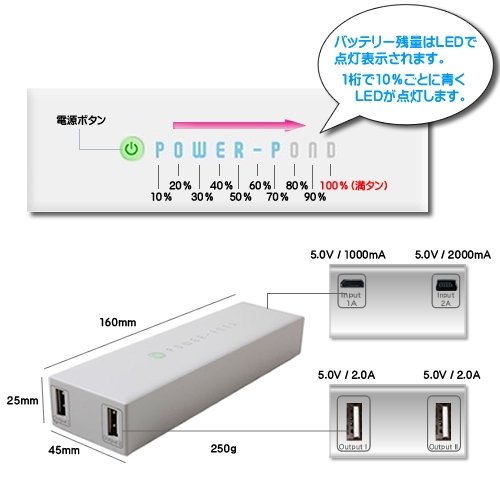 サイズ的には幅160×奥行25×高さ45㎜で、もしかしたら少々大きく感じてしまう方もいらっしゃるかもしれませんが、ケーブルがUSB-MiniUSBとUSB-Dockコネクタ、変換コネクタがMicro USBとNintendo DS Lite、およびPSP、充電用 ACアダプターが付属し、これらは汎用品で使い回しができるようになっていますので、日常やビジネスはもちろんですが、旅行やレジャーに携行してもいいですし、いわゆる防災用品としても使える性能を備えます。