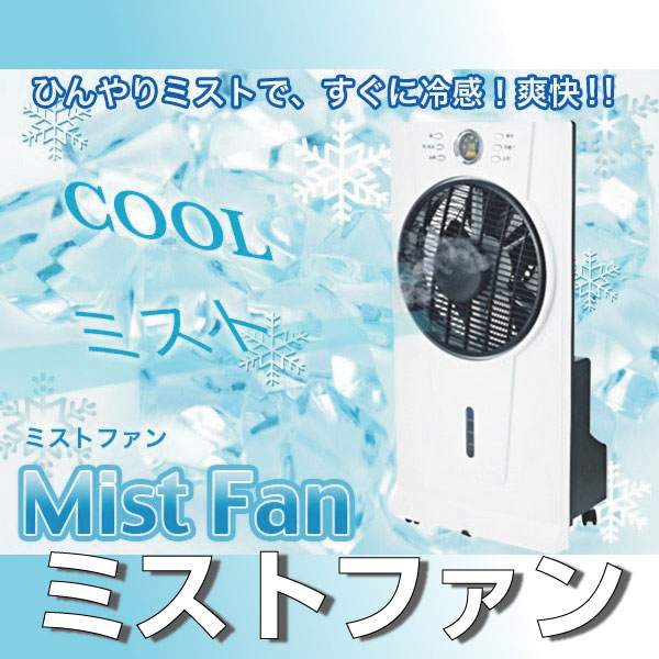 濡らしたフィルターで冷やした空気を噴出す、いわゆる冷風扇と違い、ちょくせつ空気に粒を小さくした水を混ぜて冷やしていくものであるのはいうまでもありませんが、この方式の利点は広めスペースでの気温を下げる効果が高い点にあります。