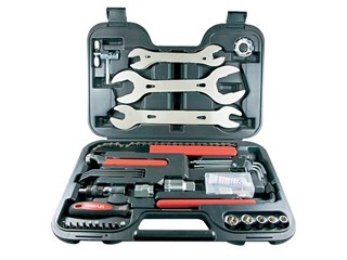 内容は、ニップルレンチ、ペダルリムーバー(13/14-15/16 2本、15/16-15/17、30/32-36/40)、チェーンカッター&かしめツール、スプロケットはずし、フックレンチ、タイヤレバー3本、BB 工具、コッタレス抜き、フリーホイール抜き、ロングヘックスレンチセット(1.5、2、2.5、3、4、5、5.5、6)、パンク修理セット、ビットホルダー、ヘックスビット(2、2.5、3、4、5、6)、ソケット(8、9、10、13、14)となっています。