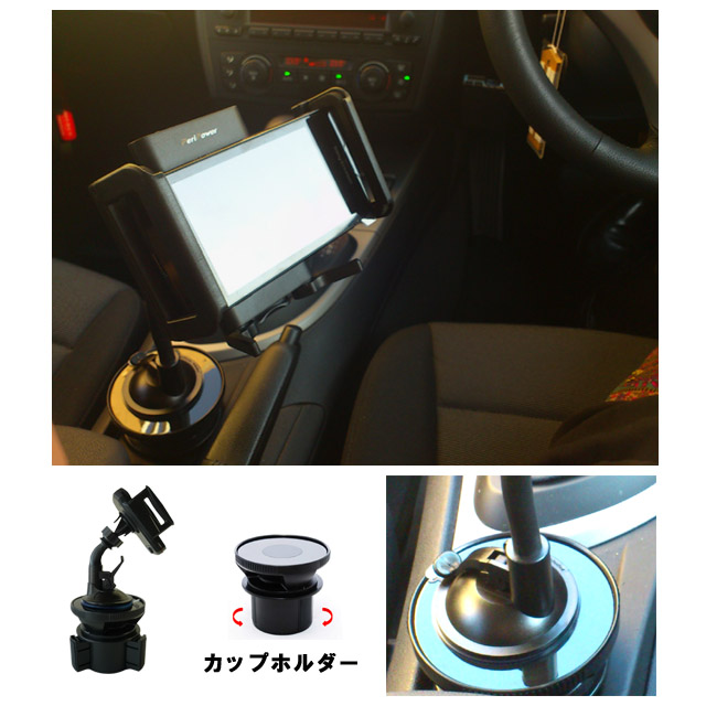自動車内のカップホルダーを利用してスマートフォン(iPhoneなど)が固定できるホルダーです、