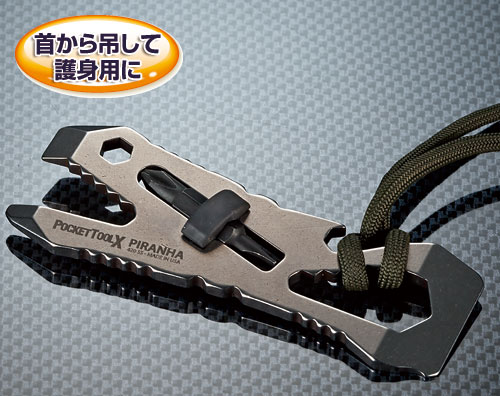 サイズの小ささもありますが、ナイフを備えないことから米国運輸保安庁認定で米国では機内持ち込み可能なものとなっており(日本では未確認)、オープンレンチ、ワイドフラット、ビットホルダー、プラスライバー、ボトルオープナー、クローズドレンチ、スクレーパー、テープニッパー、マイナスドライバー、ガラス破砕突起の機能を備えますので、日常からアウトドア、レジャーまで、ぶら提げたり、ポケットやバッグに忍ばせておくと、いろいろと便利な場合があります。