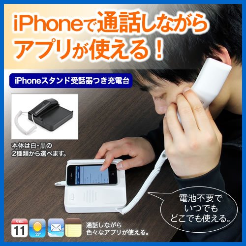 iPhone4S/4をセットして、受話器を利用して固定電話のように使える充電機能付きのスタンドです。