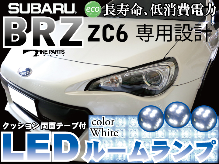 スバルBRZ専用設計のLEDルームランプ、フロント用とドアカーテシー用、そして、ラゲッジ用の4点セットです。