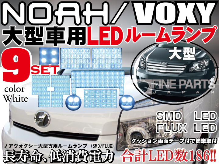 トヨタらしく誰にも違和感なく運転できる普遍的なドライバビリティと、プラットフォームを始めとしたパーツの共有化による適正的な価格でキープコンセプトと守るミニバン、ノアおよびヴォクシー 70系(ZRR70)用のLEDルームランプ、9点セットです。